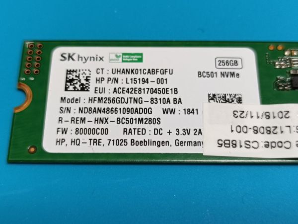 (BIOS確認済み) SSD SK hynix HFM256GDGTNI NVMe 256GB (約80mmx約22mm) No.8