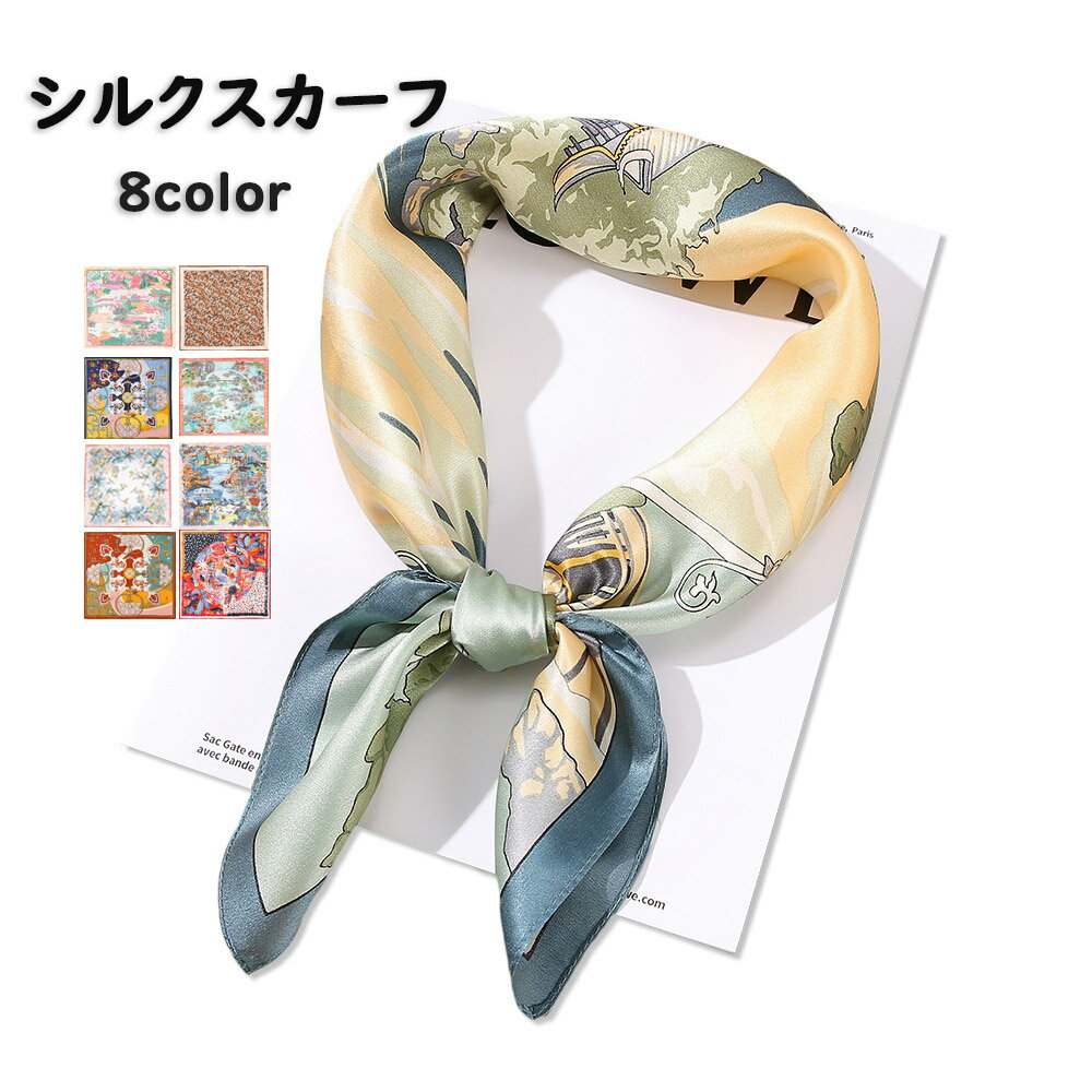 [Muzly]スカーフレディース70x70cmシルク風ネッ...