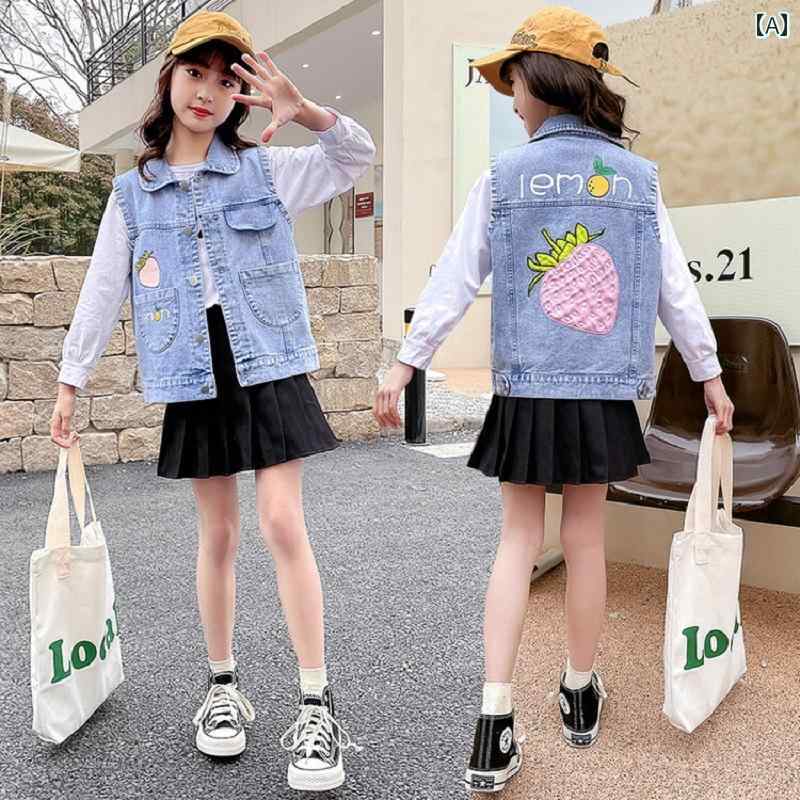 デニムベストキッズ 2024年 新 子供用 カジュ...