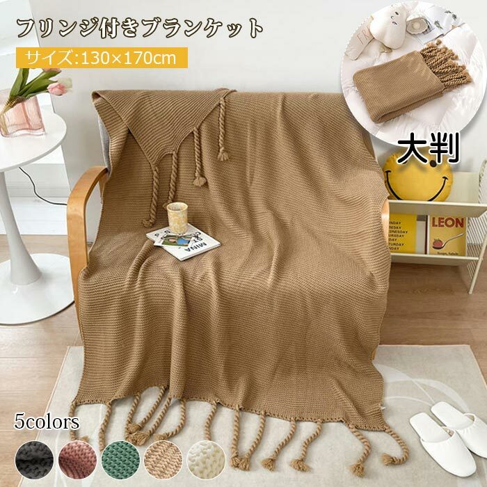 フリンジ付きブランケット 北欧 大判 着る毛...