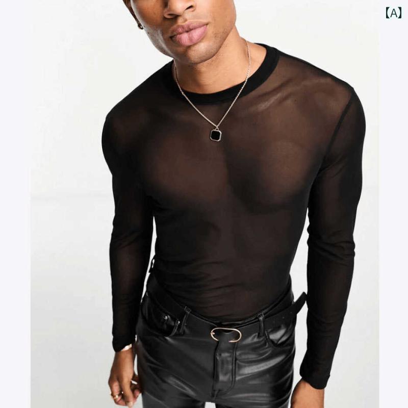 シアー トップス 長袖 ゆったり Tシャツ メン...
