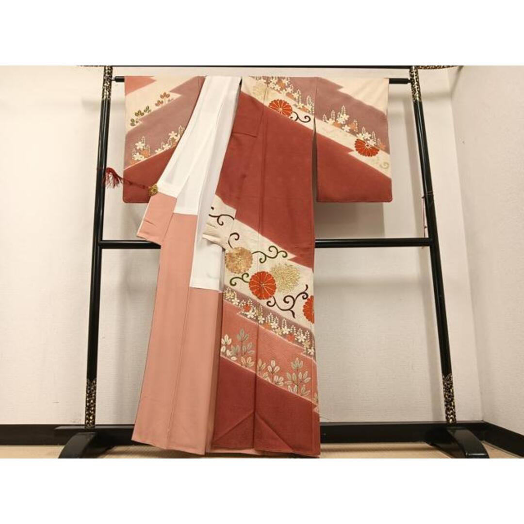 平和屋着物●訪問着 駒刺繍 花唐草文 暈し染め 金彩 正絹 逸品 AABF0025ph