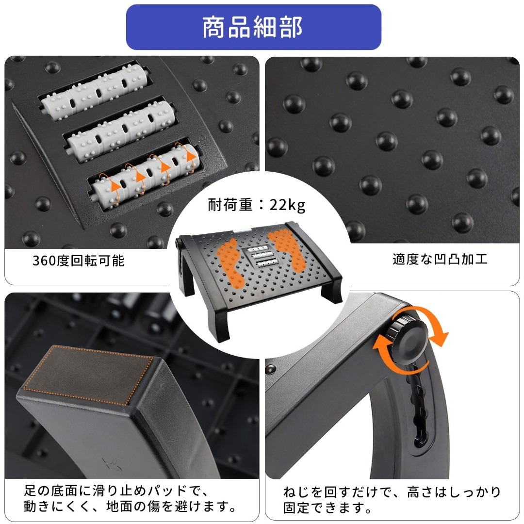 フットレスト 足置き 足置き台 デスク下 六段階高さ調節 机の下 足台 ABS素