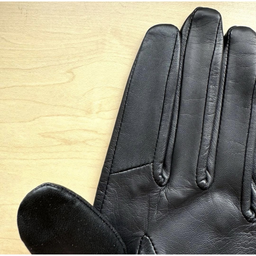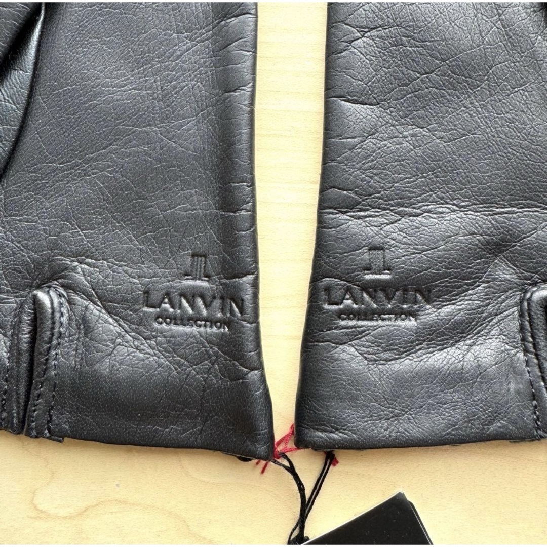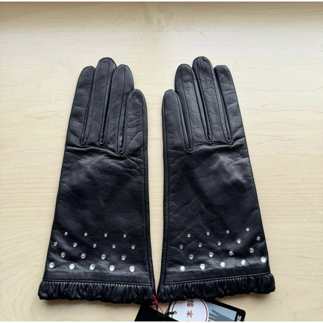 ★新品★ランバンコレクション レザー手袋 ラインストーン フリル 黒 スマホ対応