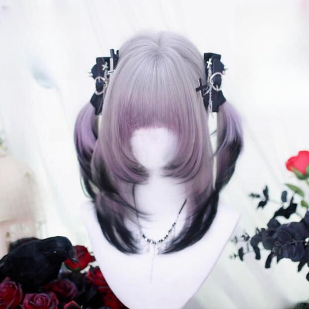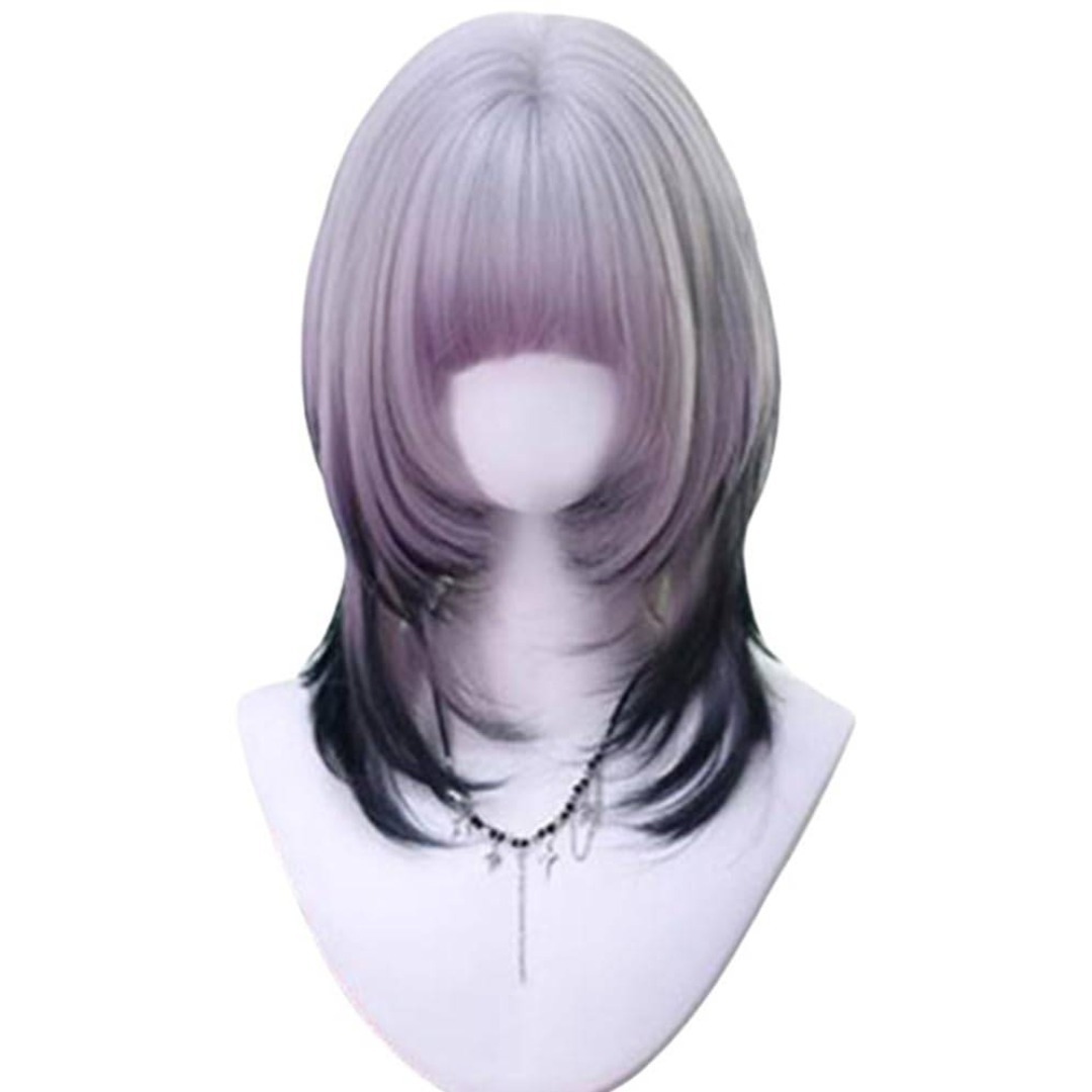 【在庫セール】ウィッグ ウルフカット セミロング ストレート パープル グレー