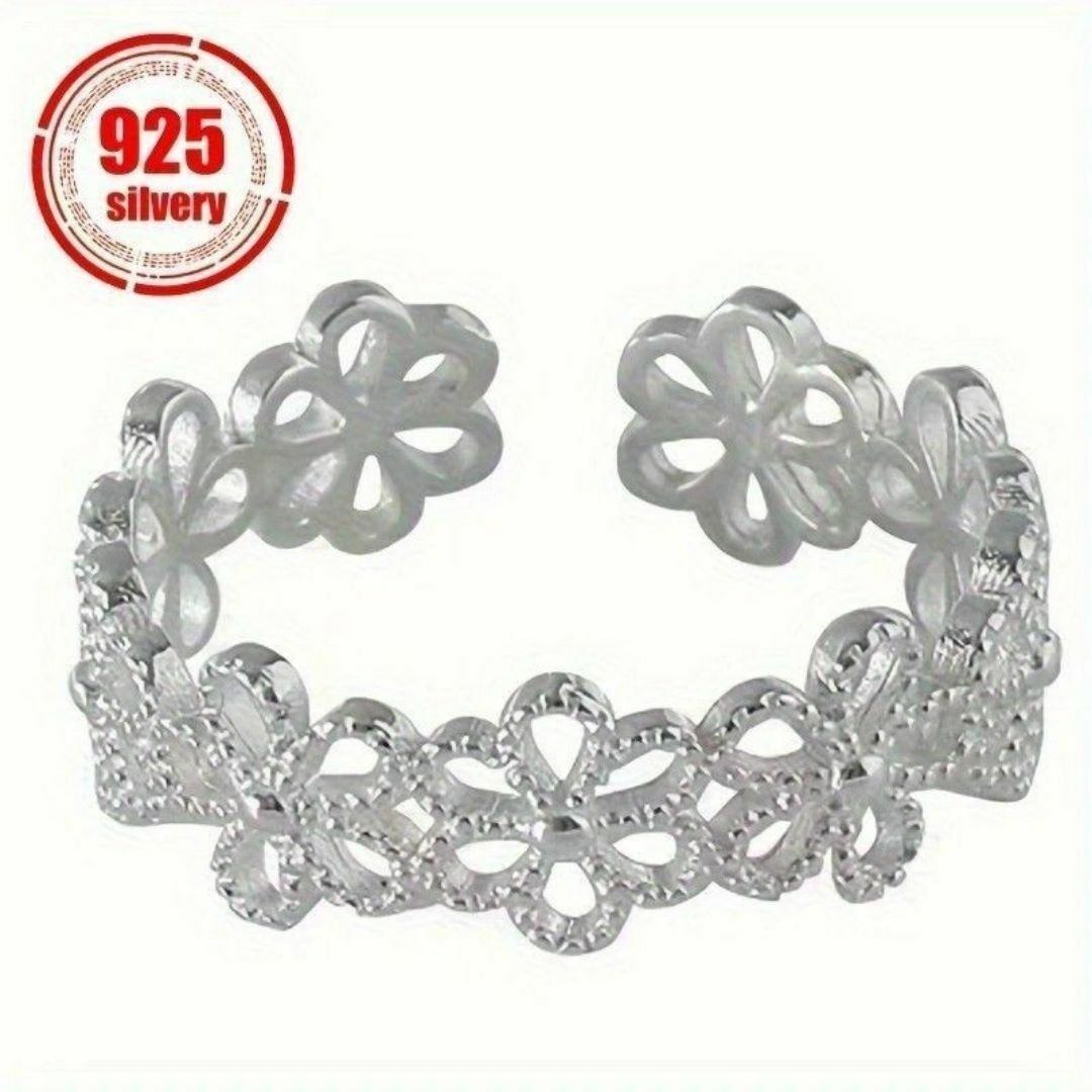 S925 フラワーモチーフ シルバーリング フリーサイズ 花 シルバー925