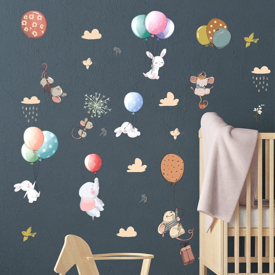 【人気商品】ウォール ステッカー かわいい 動物 バルーン 鳥 剥がせるシール
