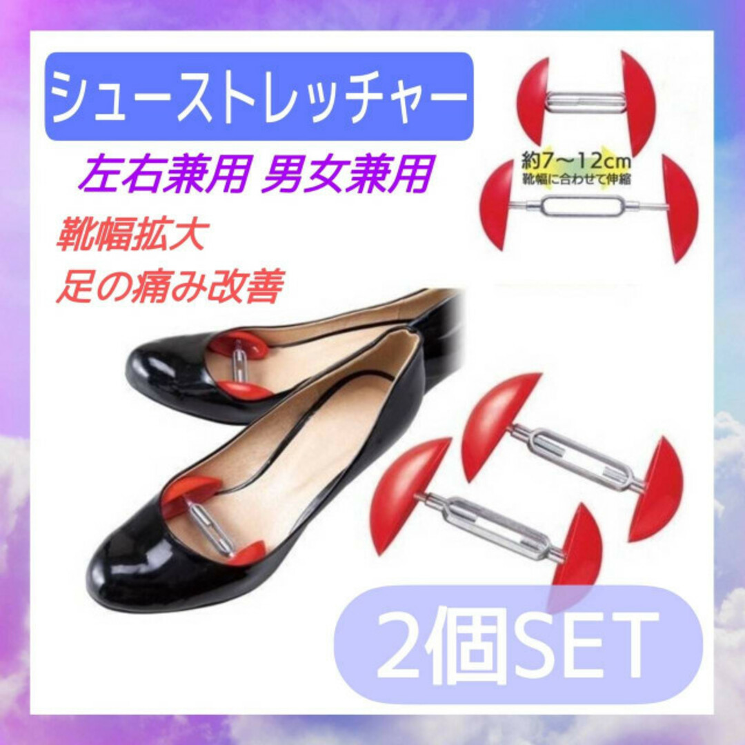 シューストレッチャー 2個 幅広げ 赤色 靴 シューキーパー 外反母趾 痛み防止