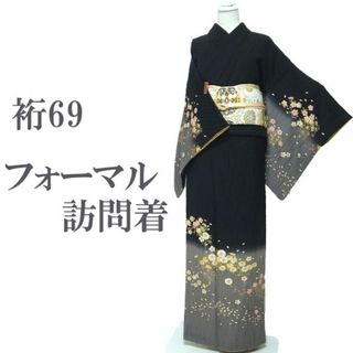 訪問着 着物 袷 手染め 地紋 黒色 金...