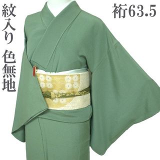 色無地 着物 袷 無地 紋入り 桐 緑 正...