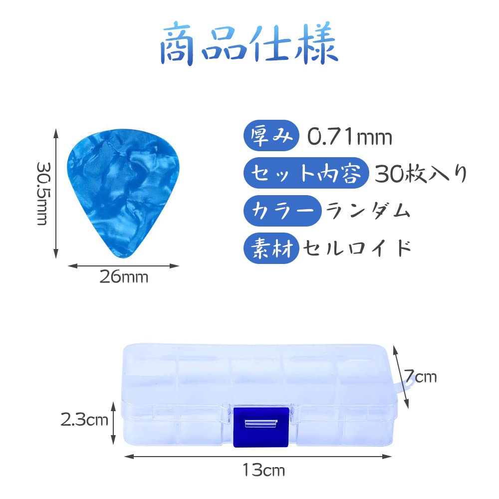 【送料無料】LOYELEY ギターピック 30枚セット 厚み0.71mm ミディアム ベース アコギ エレキ ギター ピック 初心者 カラフル ティアドロップ 収納ケース付き 練習用