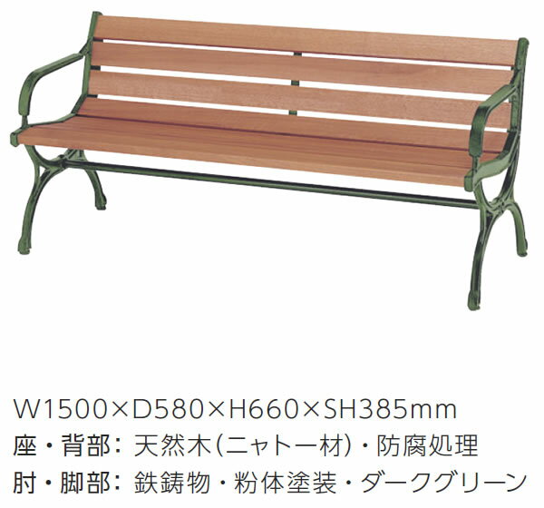 【クーポン配布中】ガーデンベンチ150 タイプB 背付き 肘付き エスカロス ブラウン 業務用家具シリーズ GARDEN(ガーデン) 送料無料 店舗 施設 コントラクト