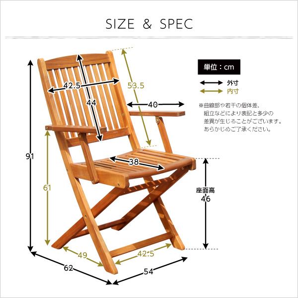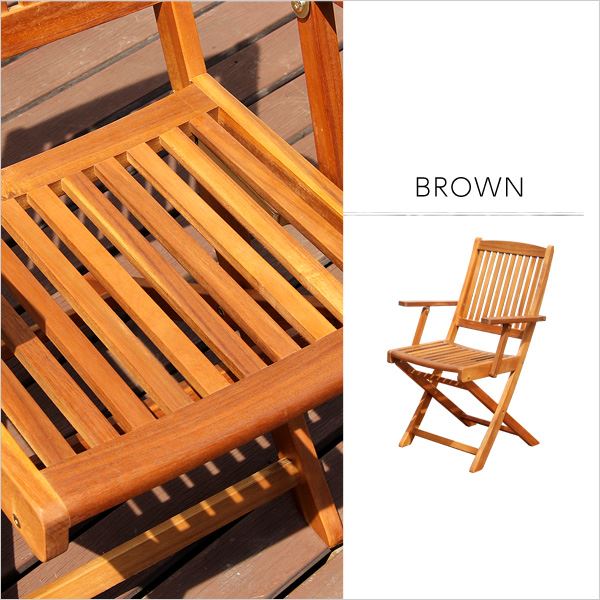 【ポイント20倍】アカシア 折りたたみ椅子/チェア 2脚セット 【肘付き 幅約54cm】 木製 オイルステイン仕上げ 〔ガーデン〕【代引不可】