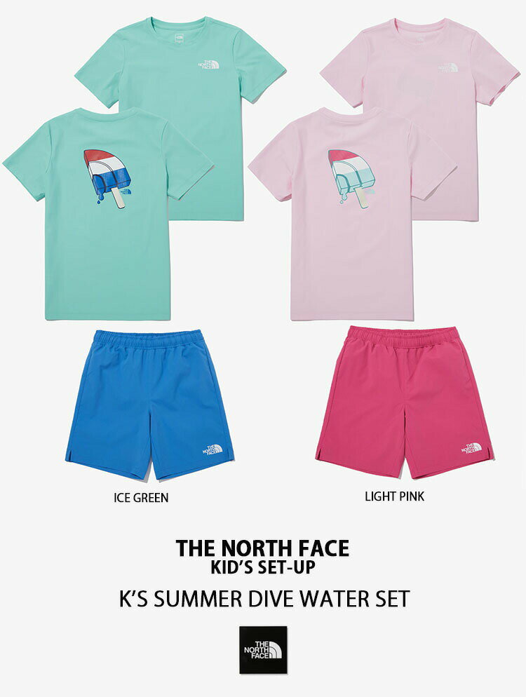 THE NORTH FACE ノースフェイス キッズ セットアップ KS SUMMER DIVE WATER SET Tシャツ 水着 ハーフパンツ UVカット 冷感素材 BLUE GREEN PINK インナーパンツ付き 水遊び マリンスポーツ サーフィン キッズ用 ジュニア用 NT7UP14S/U【中古】未使用品