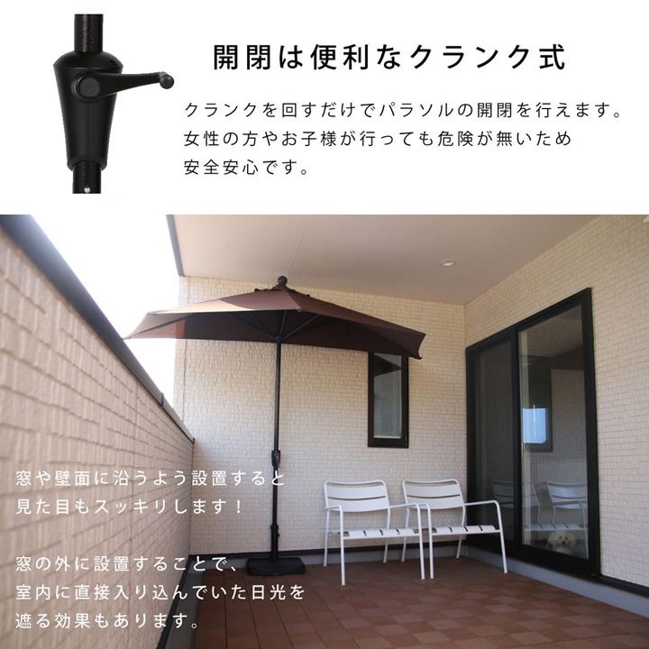 パラソル 半円 壁「 半円パラソル 」【FBC】幅270×奥行135×高さ249cmアイボリー ブラウン 【メーカー直送、変更・キャンセル不可】パラソル 屋外 アウトドア ビーチパラソル 壁際 コンパクト