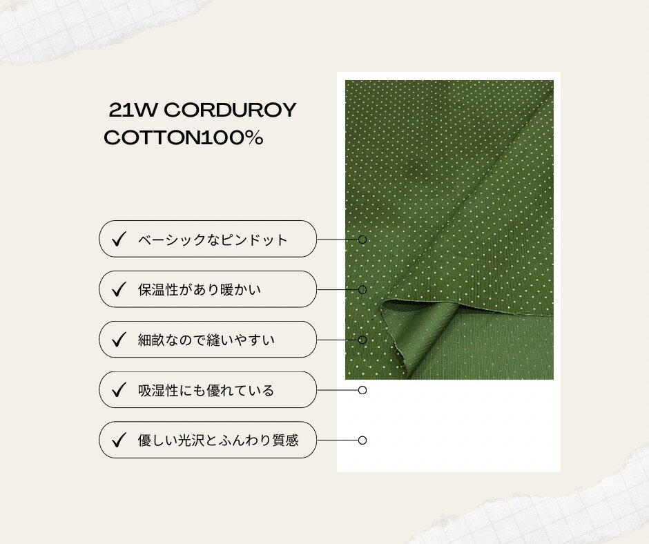 ピンドット 秋冬 コーデュロイ 21W コール天 生地 可愛い シンプル おしゃれ 手芸 かわいい 手作り 小物 ハンドメイド