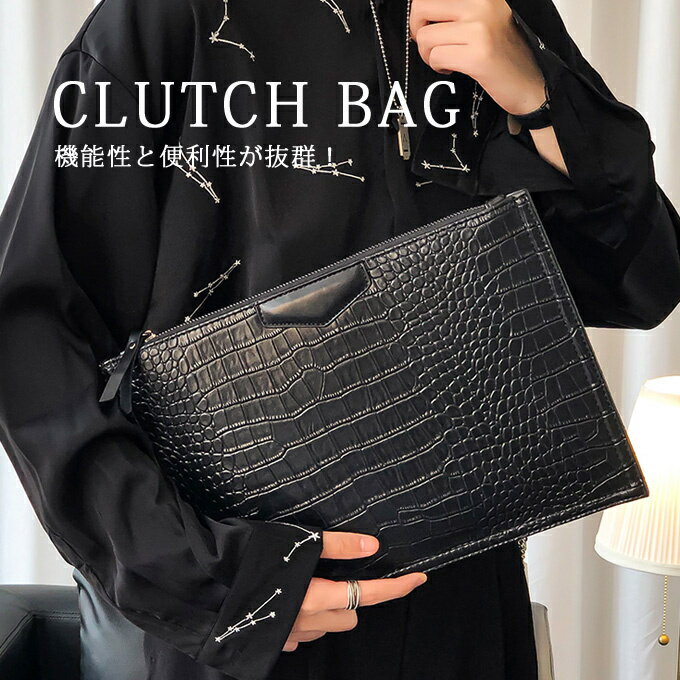 メンズ ハンドバッグ 手持ち セカンドバッグ 2WAY ショルダーバッグ かっこいい おしゃれ クロコ クラッチバッグ 男性 紳士 PUバッグ 鞄 韓国 おすすめ クラッチ ショルダー 封筒 シンプル カジュアル 高級 ビジネス 通勤 通学