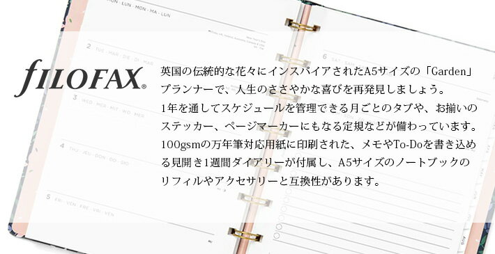 ファイロファックス 2024年 手帳 詰め替え可能ノートブック A5サイズ ガーデン ダスク Filofax Garden Planner