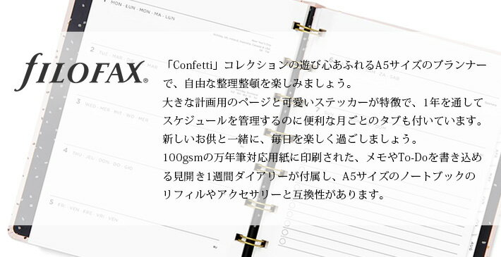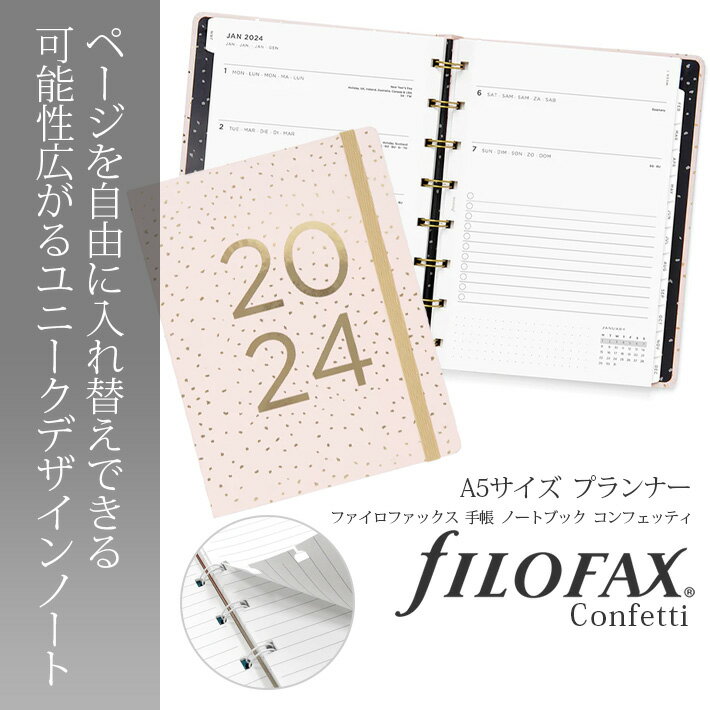 ファイロファックス 2024年 手帳 詰め替え可能ノートブック A5サイズ コンフェッティ ローズクオーツ Filofax Confetti Planner