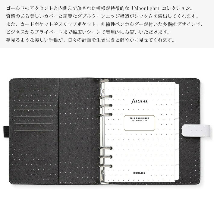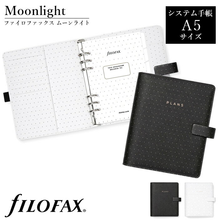 ファイロファックス システム手帳 ムーンライト Moonlight A5サイズ デスクサイズ 合皮 6穴 Filofax 年号無し年間スケジュール付き リング径30mm メンズ レディース ベルトボタン留め式