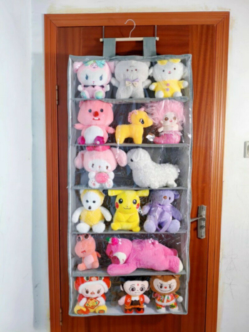 ウォールポケット ぬいぐるみ収納ケース スタンド付き コレクションケース 壁掛け収納 収納ボックス 小物収納 ドア掛け ポケット 吊り下げ 大容量 透明窓付き 3段 4段 5段 6段