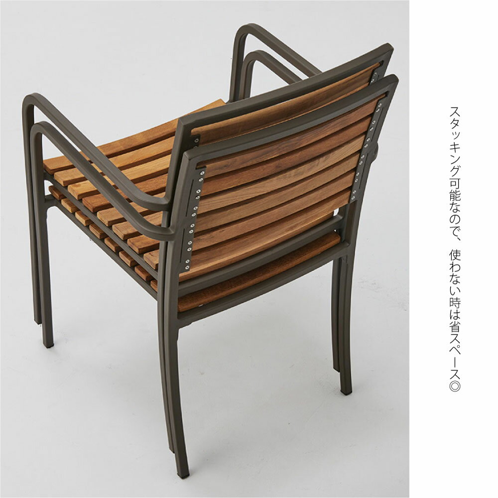 デニーアームチェア チェアー 椅子 ガーデン 家具 チーク ウッド 木 おしゃれ 可愛い 北欧 シンプル モダン テラス ガーデンチェア ガーデンファニチャー スチール アイアン 屋外 アウトドア ベランダ エクステリア バルコニー スタッキング ベランピング グッズ