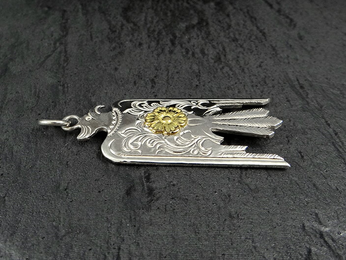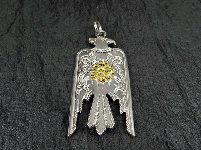 Dear Blossom(ディア ブロッサム)『K18ワイルドローズ on サンダーバードペンダント/唐草 L』SILVER925、K18【シルバー ペンダント アラベスク ローズ イーグル ネックレス インディアンジュエリー 手彫り メンズ ブランド プレゼント 通販 高品質】T-139F