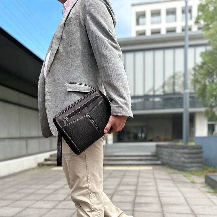 クラッチバッグ セカンドバッグ メンズ 結婚式 黒 26cm ストラップ付き マチあり 大開き、サブバッグ、フォーマル、ビジネスバッグ、CRADLE RIVER 敬老の日