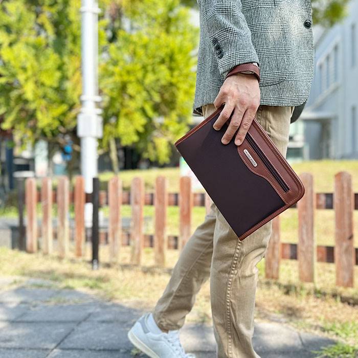 クラッチバッグ セカンドバッグ メンズ 結婚式 26cm ストラップ付き マチあり 大開き CRADLE RIVER 黒 チョコ KBN25955