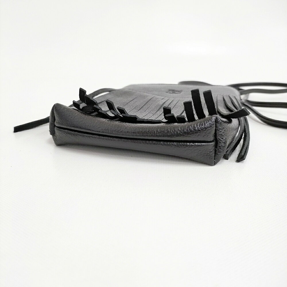 IL BISONTE クロスボディバッグ レザー フリンジ 定価44000円 ポシェット ブラック レディース イルビゾンテ【中古】5-0628G