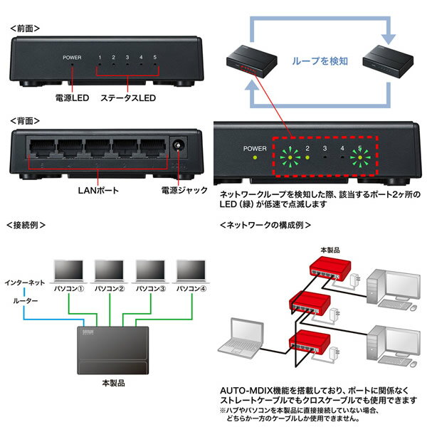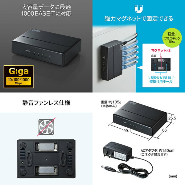【11/20限定クーポン発行】スイッチングハブ 5ポート ギガビット対応 マグネット付き サンワサプライ LAN-GIGAP501BK【KK9N0D18P】