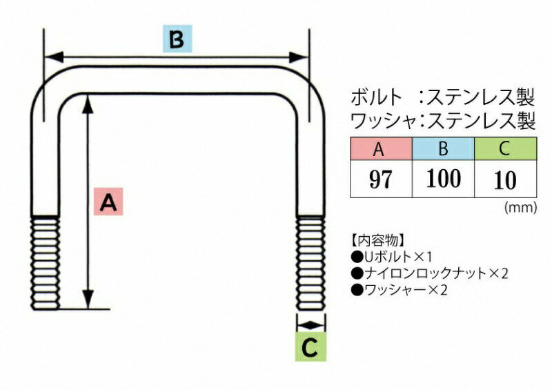 角型 Uボルトキット ( ステンレス ) 97 x 100 x φ10 _09014-01