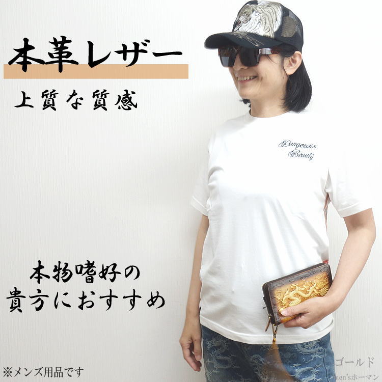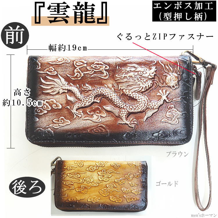 夏新作 衣櫻/ころもざくら【送料無料】雲龍 型押し 燻加工 凹凸柄エンボス加工 牛革レザー 本革 脱着可能ストラップ 個性派 和柄カジュアル ラウンドZIP長財布 ロングウォレット 茶/金 F(フリーサイズ)【smtb-k】【ky】父の日【YDKG-k】メンズ【ky】ギフト【RCP】SA-1708