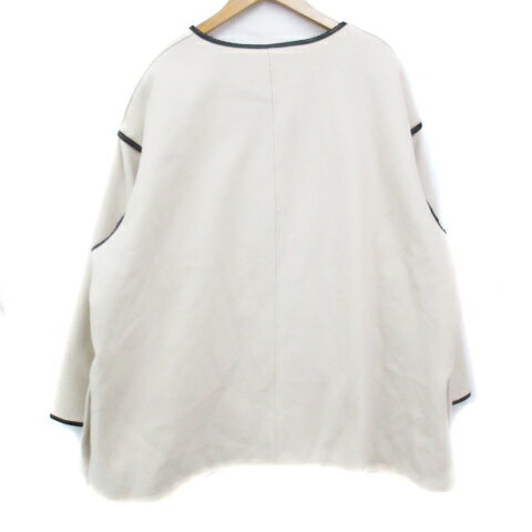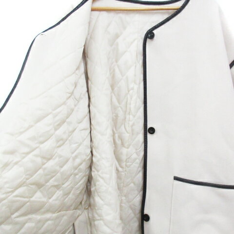 【中古】アントマリーズ Aunt Maries 中綿ジャケット ノーカラージャケット ミドル丈 総裏地 シングルボタン F オフホワイト 黒 ブラック /FF3 レディース 【ベクトル 古着】 240216