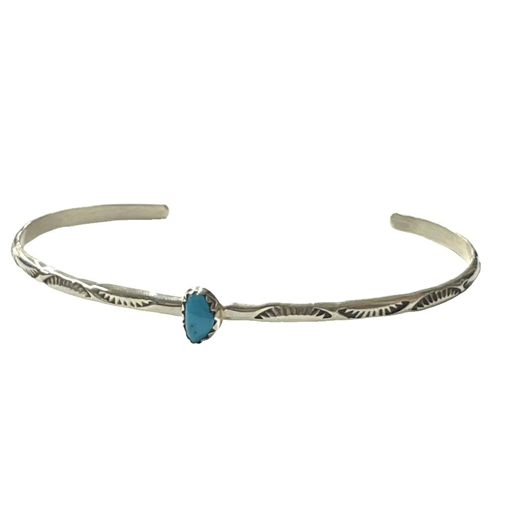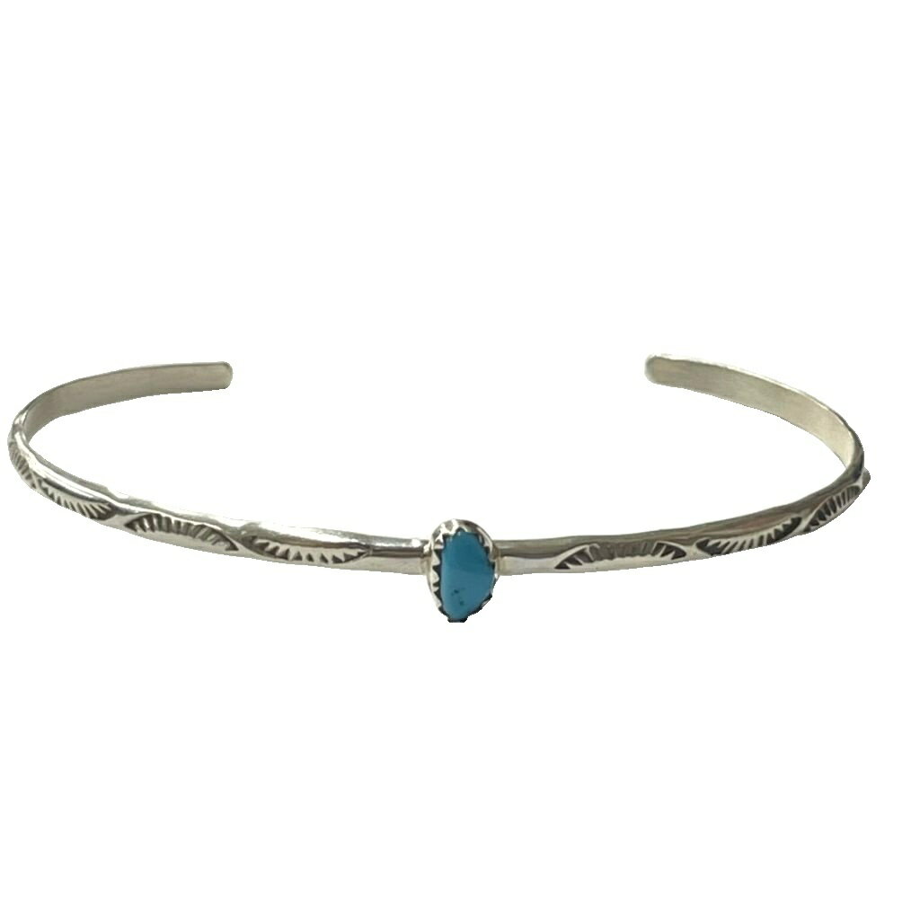 【中古】スタンプワーク ターコイズ シルバーバングル ブレスレット sterling刻印 USA刻印 銀 シルバー アクセサリー メンズ レディース 【ベクトル 古着】 251002