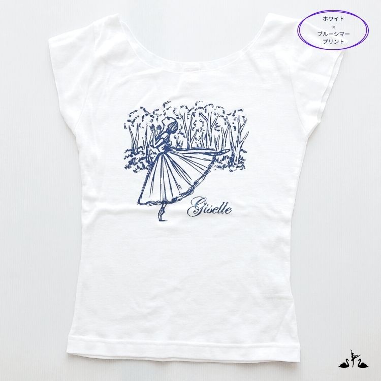 \Lineお友達いつでも300円OFFクーポン/【itscorbeille イツコルベイユ】バレエ フレンチスリーブ Tシャツ ジゼル ホワイト 大人 ジュニア 半袖 ウォームアップ ブルーシマー色プリント おしゃれ トップス かわいい