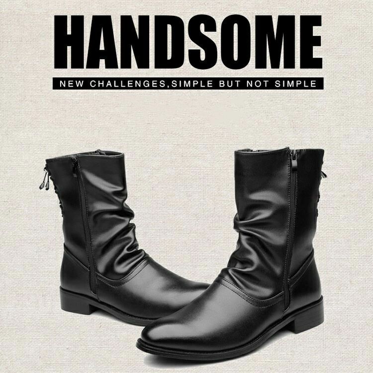 メンズ ブーツ ドレープブーツ サイドジッパー 革靴 紳士靴 ワークブーツ 靴 革靴 高級 革靴 ビジネスブーツ 軽量 防滑 防水 23.5-27cm カジュアル 大きいサイズ男性