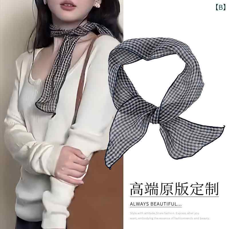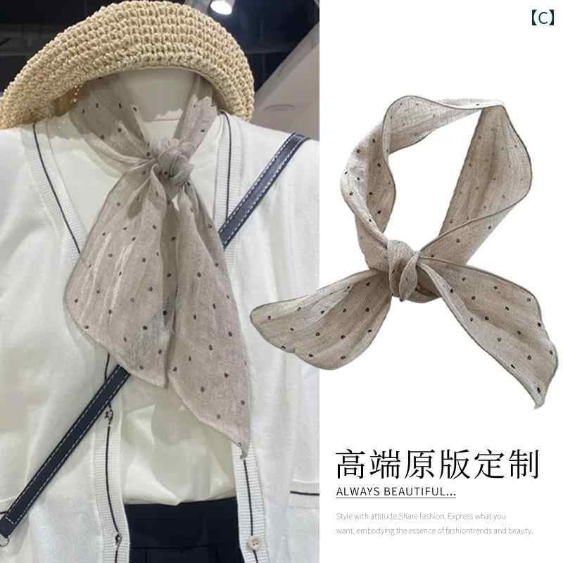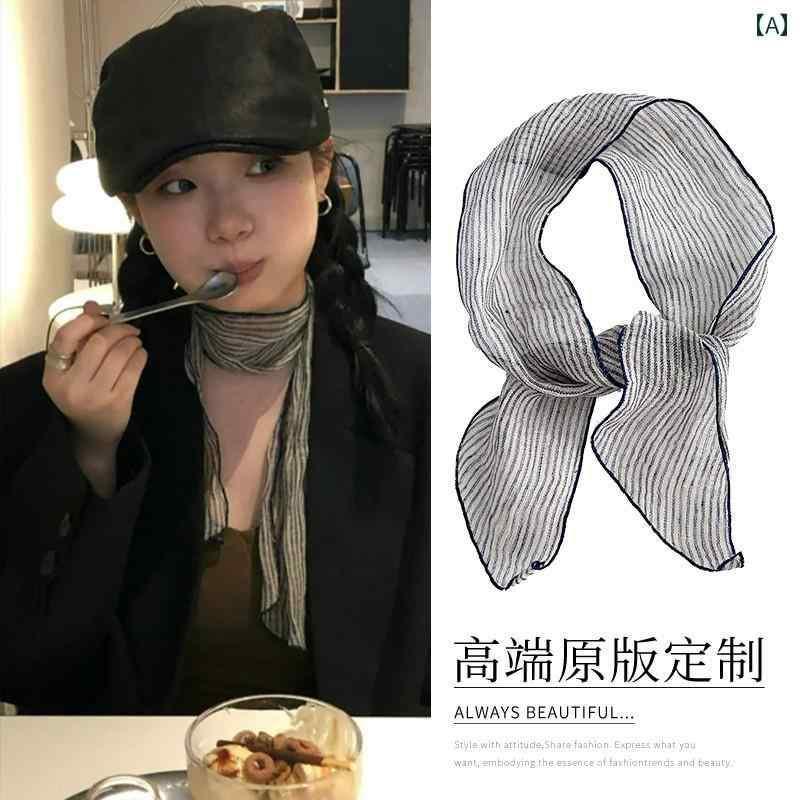 スカーフ おしゃれ レトロ 文学的な ストライプの リネンの 小さい シルクスカーフ。 女性用。 韓国 万能 ファッション スカーフ。 細い リボンの ネック