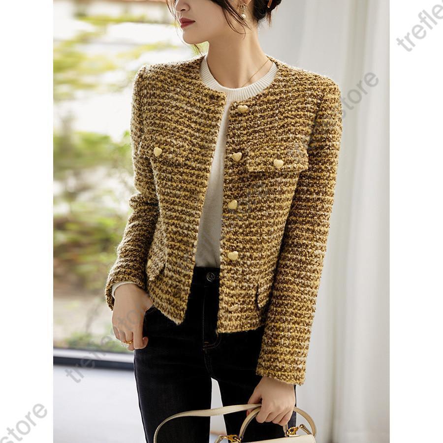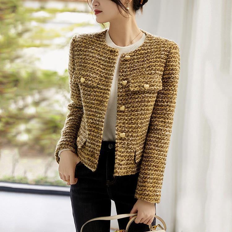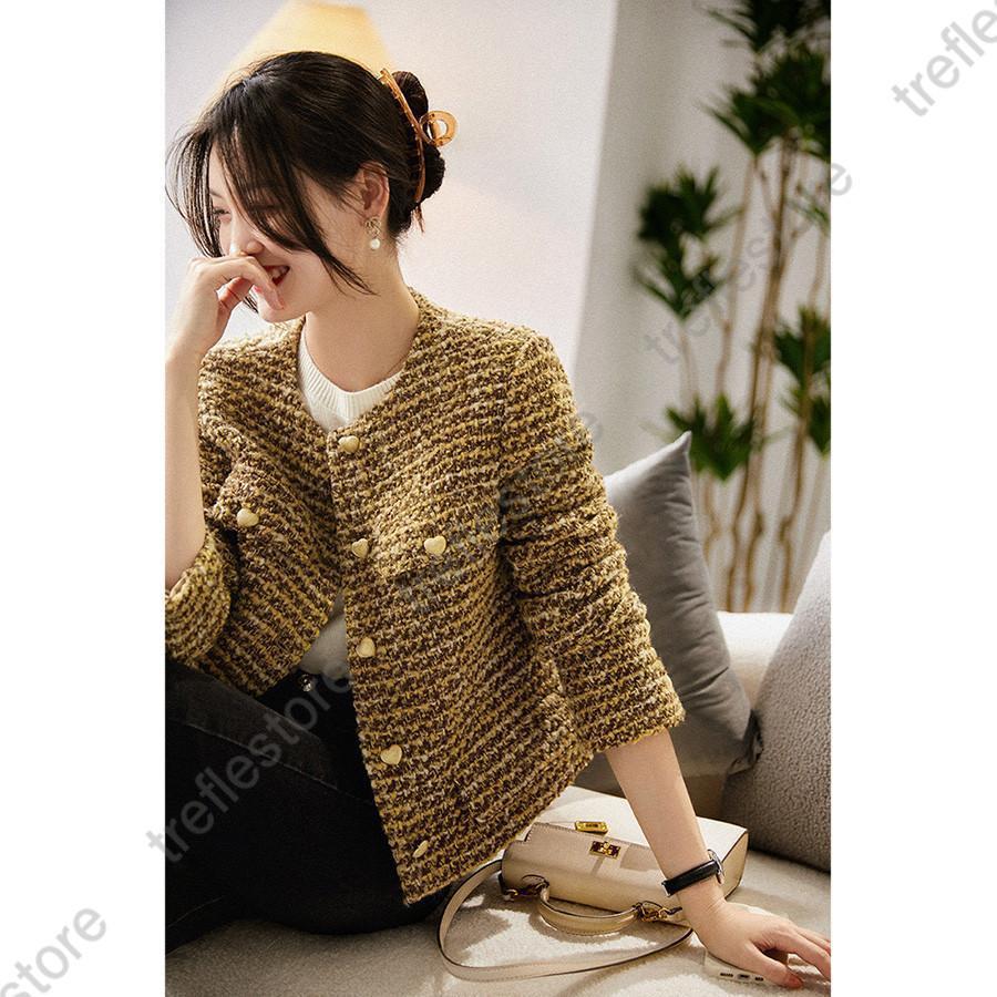 ツイードジャケット レディース 40代 長袖ノーカラージャケット チェック柄 ショット丈ツイードコート 春コートアウター 秋服 大人韓国風 通勤OL 結婚式 入学式