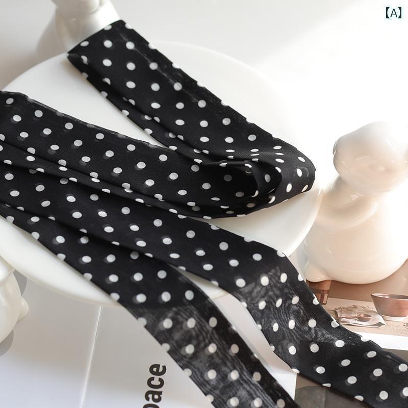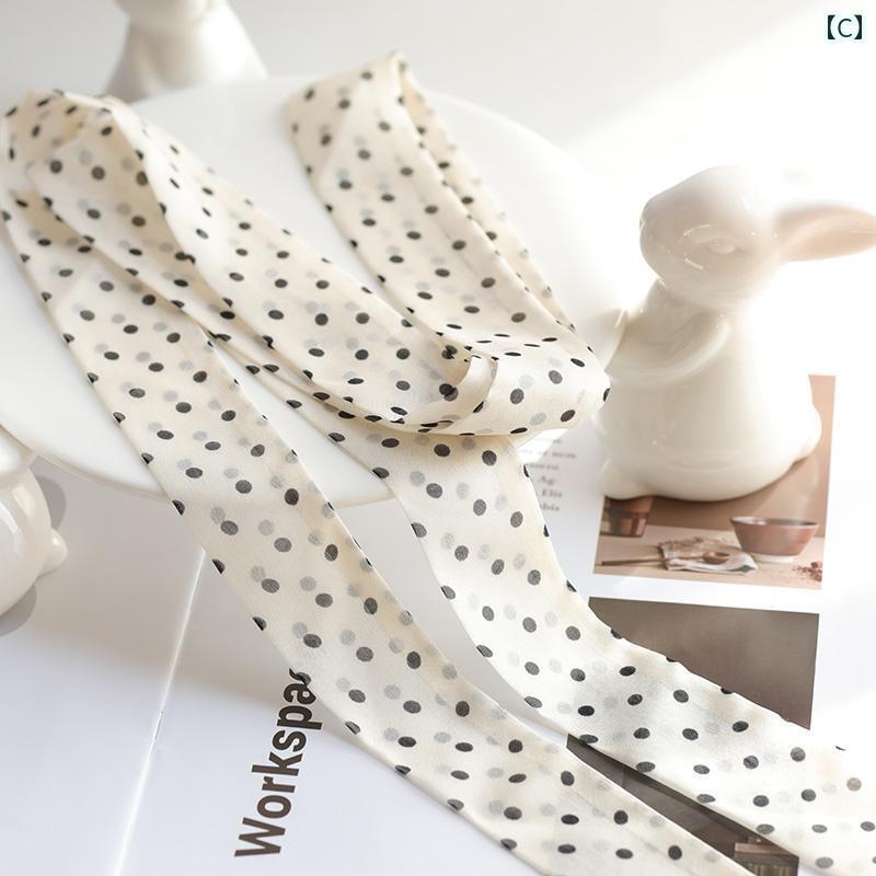 スカーフ おしゃれ レディース 100 % シルクスカーフ ロング ブラックと ホワイト ドット 柄 リボン マルベリー シルク ヘア バンド 春夏 レディース ネック オーナメント スカーフ