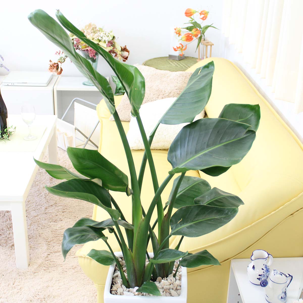 ストレリチア(ストレチア)・オーガスタ 9号+選べる陶器鉢 Zタイプ(高さ 約1〜1.2m)3株植え 土の表面:化粧石|観葉植物 ブルーミングスケープ