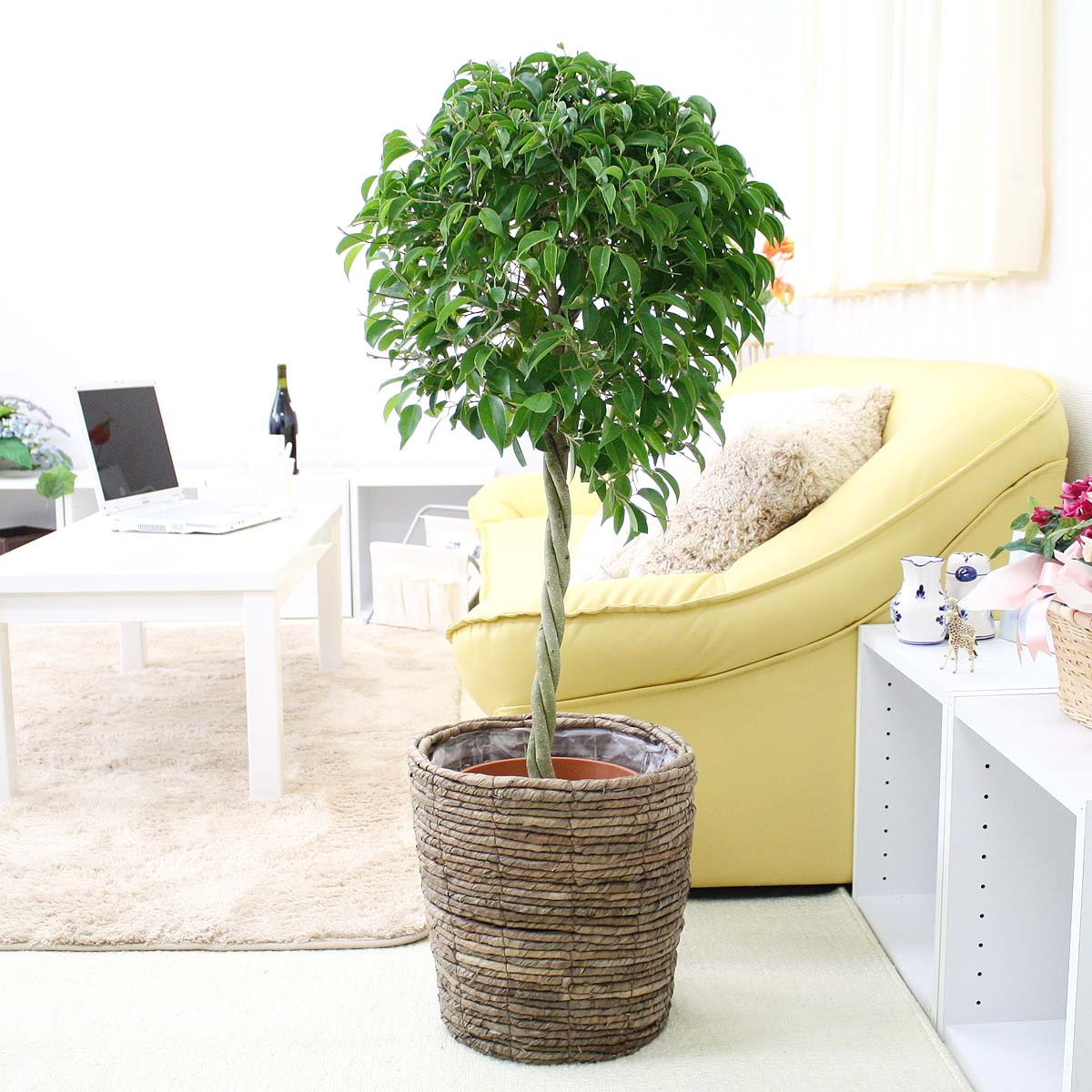 ベンジャミン トピアリー 8号鉢 選べるバスケット鉢カバー 土の表面:ウッドチップ|観葉植物 ブルーミングスケープ