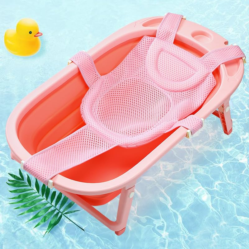 折り畳み式ベビーバスタブ、バスサポートクッション&シートマット付き、滑り止め設計で安全、折り畳み可能で携帯便利、旅行や自宅での使用に最適、新生児・幼児・乳児対応、軽量で収納簡単、赤ちゃんの快適なお風呂タイムをサポート (ホワイト)