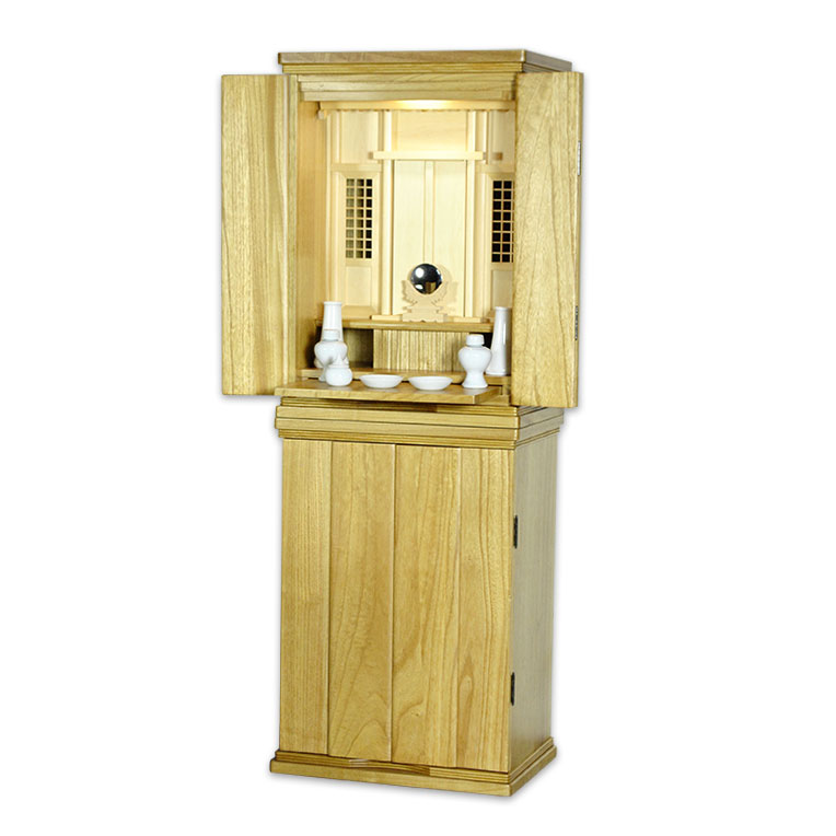 神具付き【モダン祖霊舎:初穂(はつほ)・天然木総桐材 43号・ナチュラル LED照明付き】祖霊舎・神徒壇 神道 御霊舎 霊璽 御霊代 神棚 送料無料【smtb-td】
