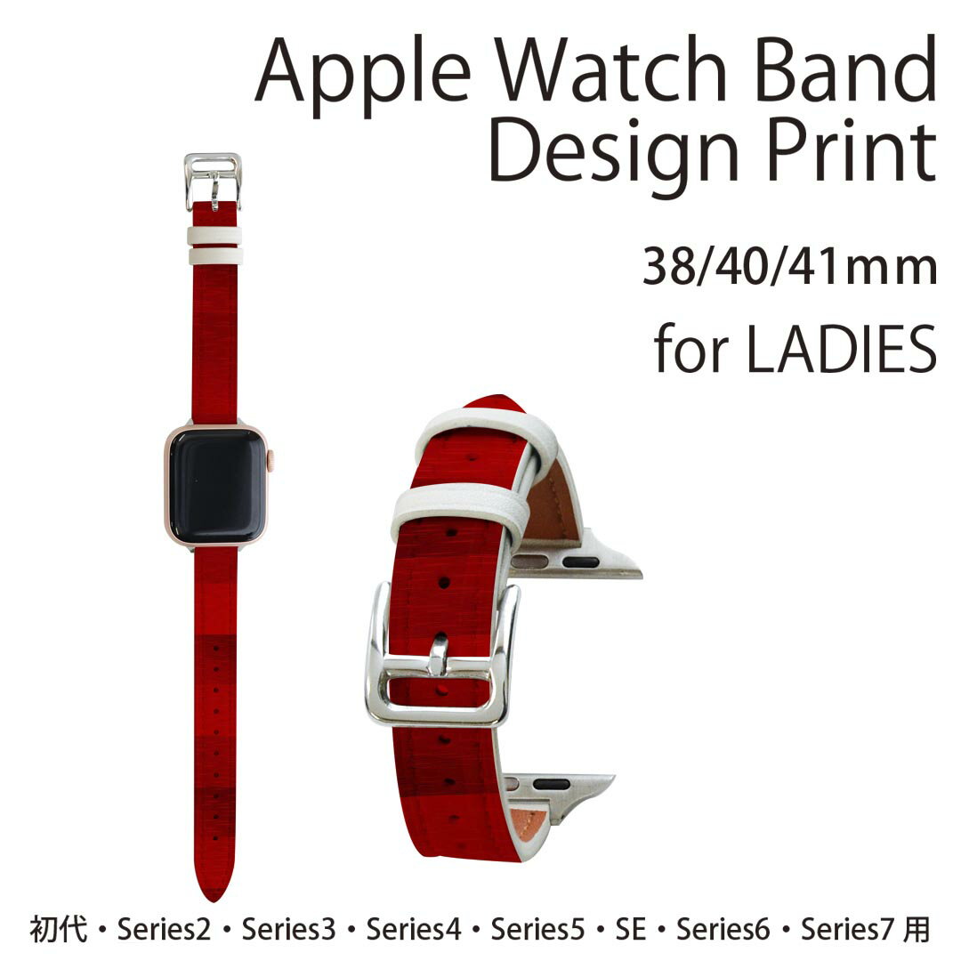 アップルウォッチ 用 バンド Apple Watch 用 取替 レザー ベルト 女性 38mm 40mm 41mm レディース AppleWatch用 全シリーズ対応 初代・Series2・Series3・Series4・Series5・Series6・Series7・SE 対応 006762 赤 レッド 模様