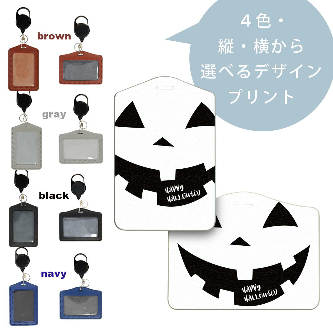 パスケース リールキーホルダー付 定期入れ IC IDカード入れ グレー ブラック ブラウン ネイビー 紛失防止 70cm伸びる 社員証入れ 通学 通勤 passcase 017458 ハロウィン 顔 かぼちゃ パンプキン