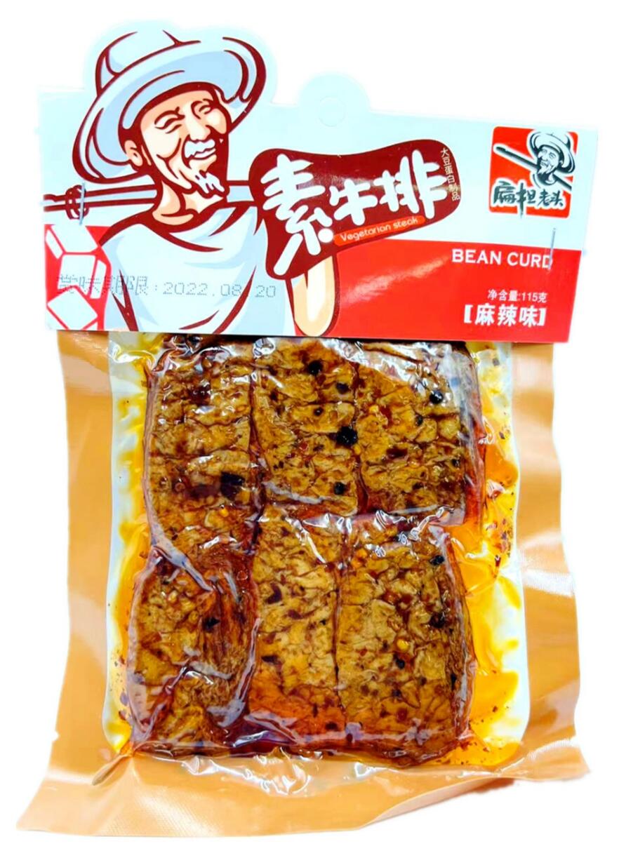 扁擔老頭 素牛排 【 麻辣味 焼考味 】 素肉 中国おやつ 間食 115g 豆製品 ポイント消化 大豆製品