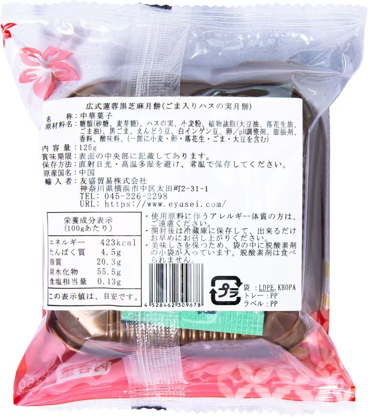 広式月餅 蓮蓉黒芝麻月餅 黒胡麻入りハスの実 1個 月餅 中秋節ギフト限定商品 中国お菓子 黒胡麻入り月餅 125g ごま餡 黒ごま餡 中国本番の味 中国産 黒胡麻 ごま 月餅 廣式月餅 黒芝麻月餅