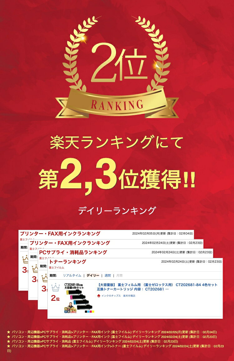 大容量版 富士フィルム用 富士ゼロックス用 CT202681-84 4色セット 互換トナーカートリッジ 内容: CT202681 CT202682 CT202683 CT202684 機種: DocuPrint CM310z DocuPrint CM310z II DocuPrint CP310dw DocuPrint CP310dw II