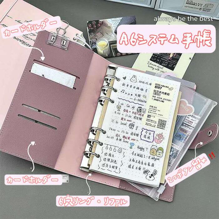 システム手帳 A6サイズ ビジネス手帳 6穴リング 高級PUレザー ノート手帳 ドーリング紙 メモ帳 リング バインダー スケジュール帳 旅行日記帳 卒業記念品 就職 プレゼント 学生用 日記帳 リング 手帳カバー オフィス用品 ケースレザー ファイルケース ブリーフケース